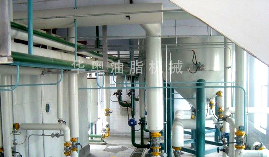 毛油-过滤(叶片过滤机)—脱磷—碱炼—水洗—脱水—脱色—脱臭—冷却—过滤—成品油,济南华奥公司生产的食用